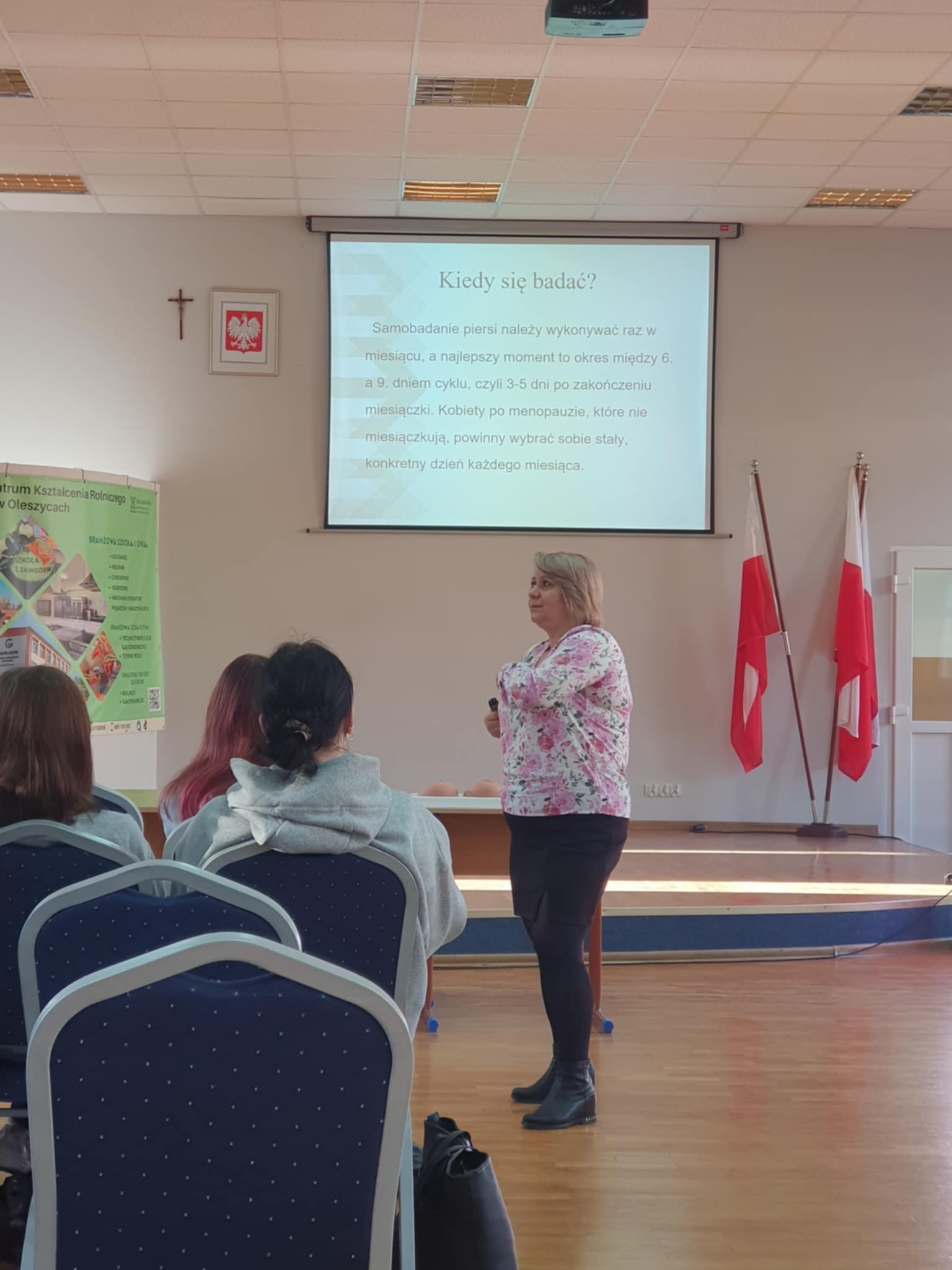 Tematem spotkania było samobadanie piersi oraz profilaktyka chorób nowotworowych,w szczególności raka piersi.