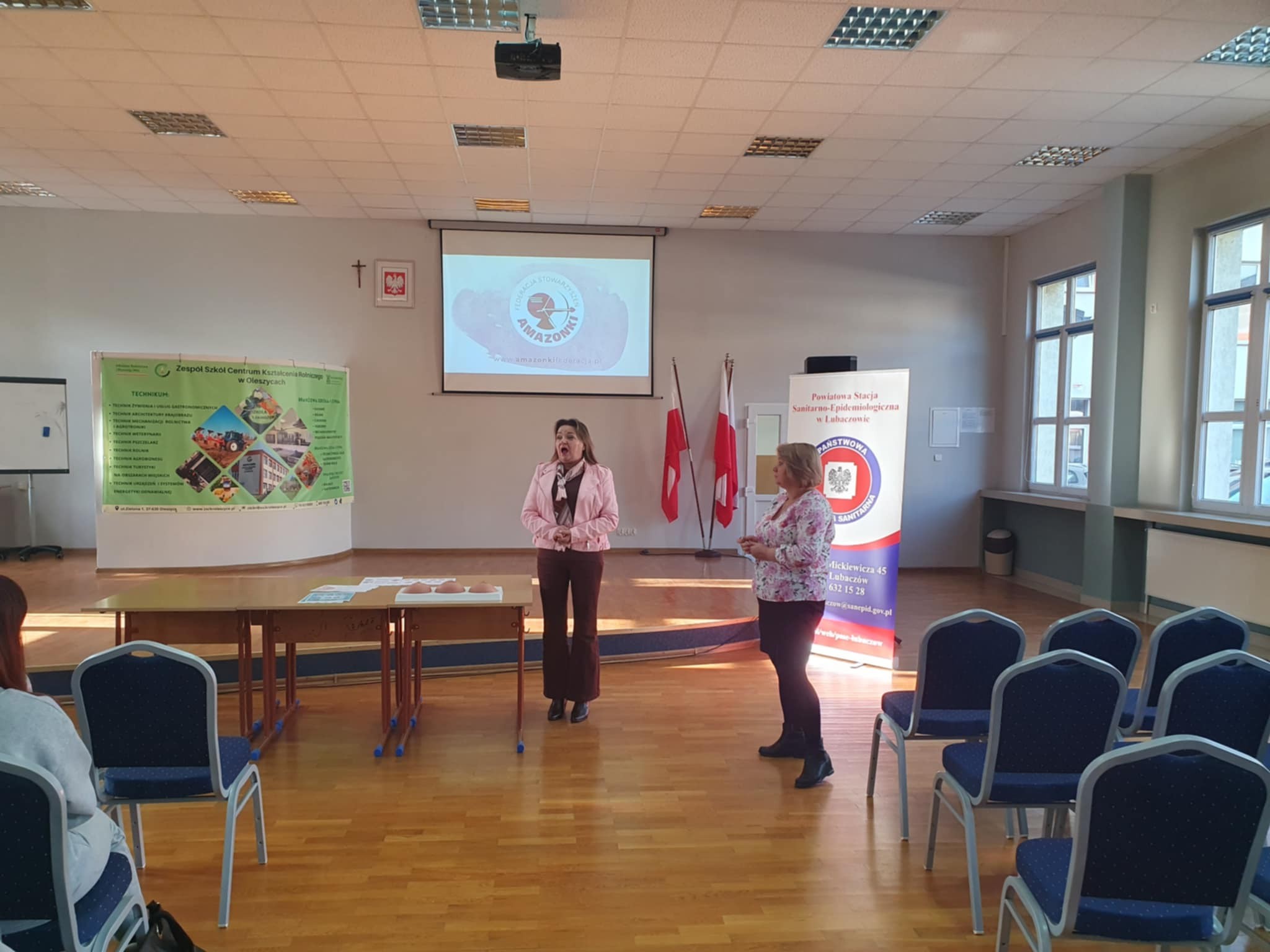 z panią Elżbietą Rubin edukatorką Powiatowej Stacji Sanitaro-Epidemiologicznej w Lubaczowie oraz panią Małgorzatą Lewkowicz położną środowiskową.